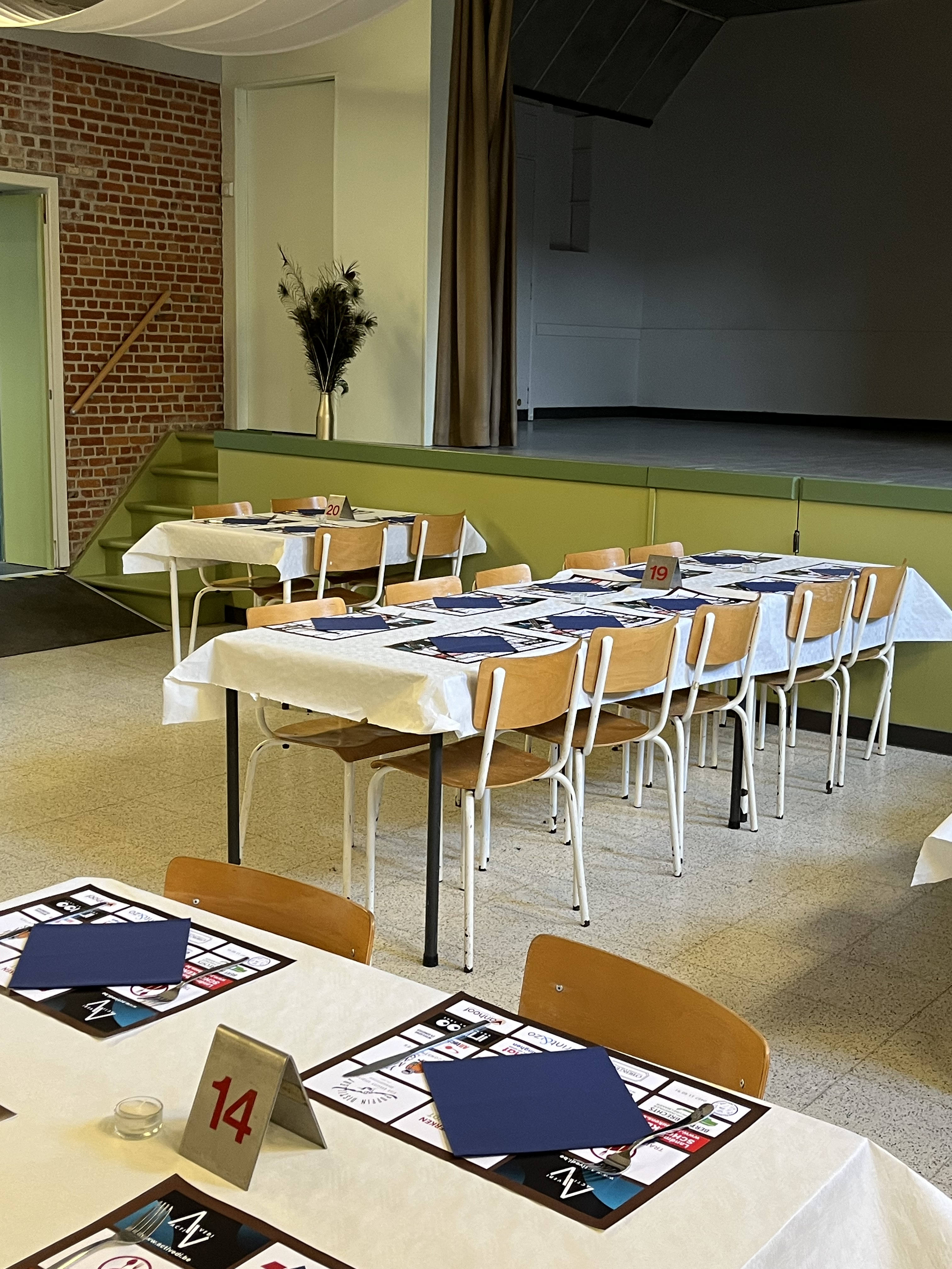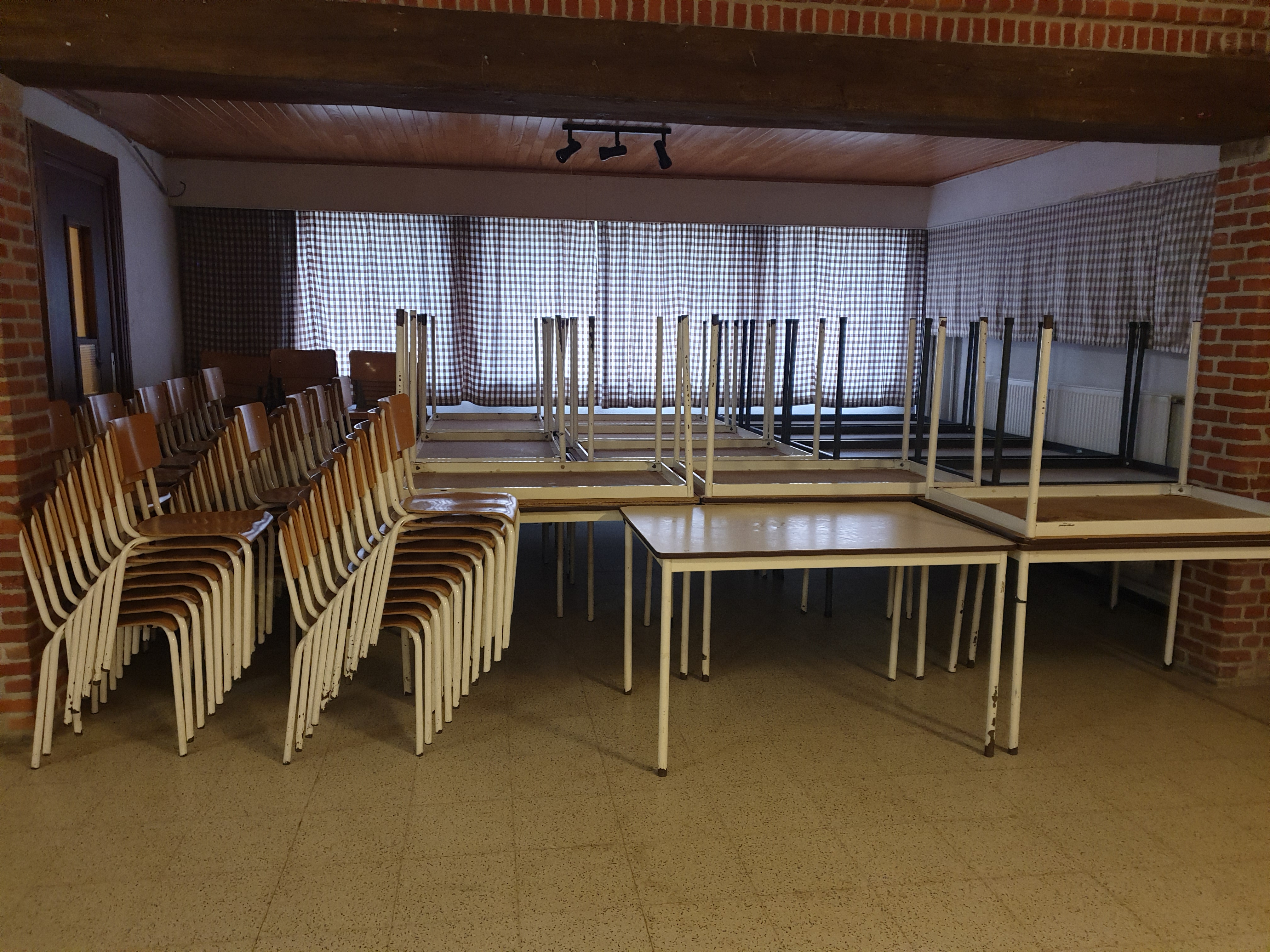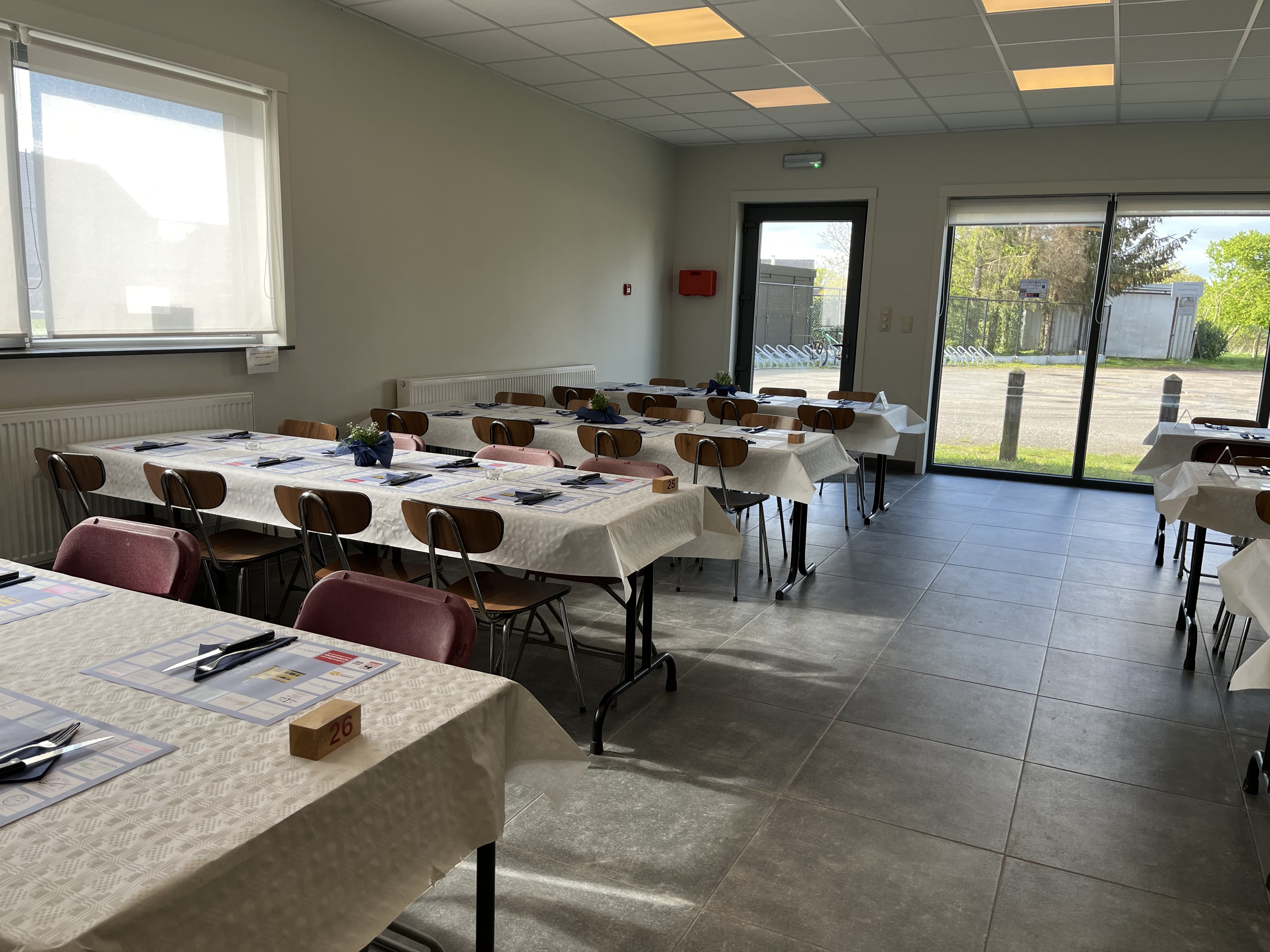 Foto’s Wil je de zaal ‘live’ bezichtigen? Dat kan elke 4de woensdag van de maand om 19u. Buitenkant Grote zaal Toog in de grote zaal Kleine zaal Keuken Varia