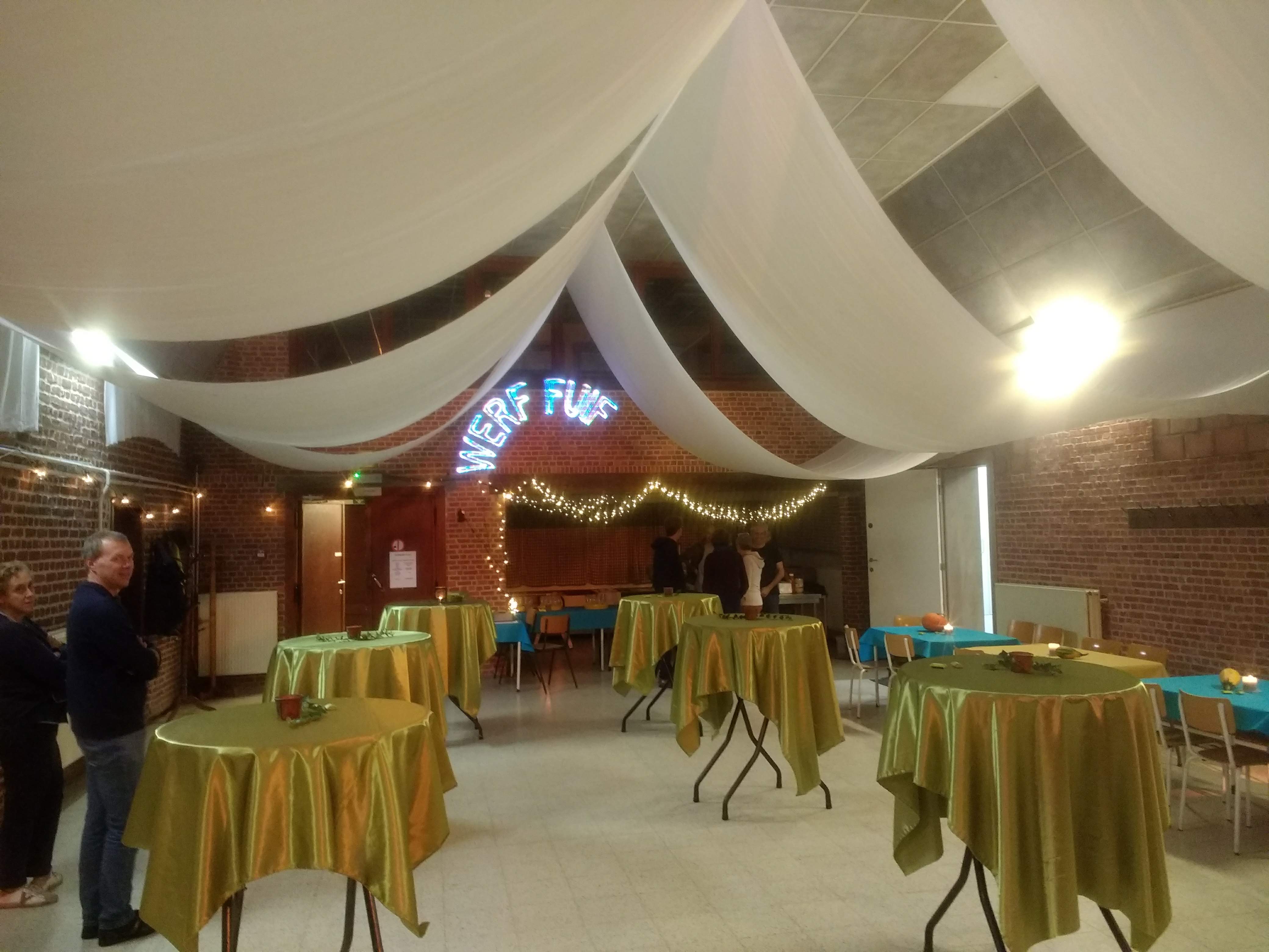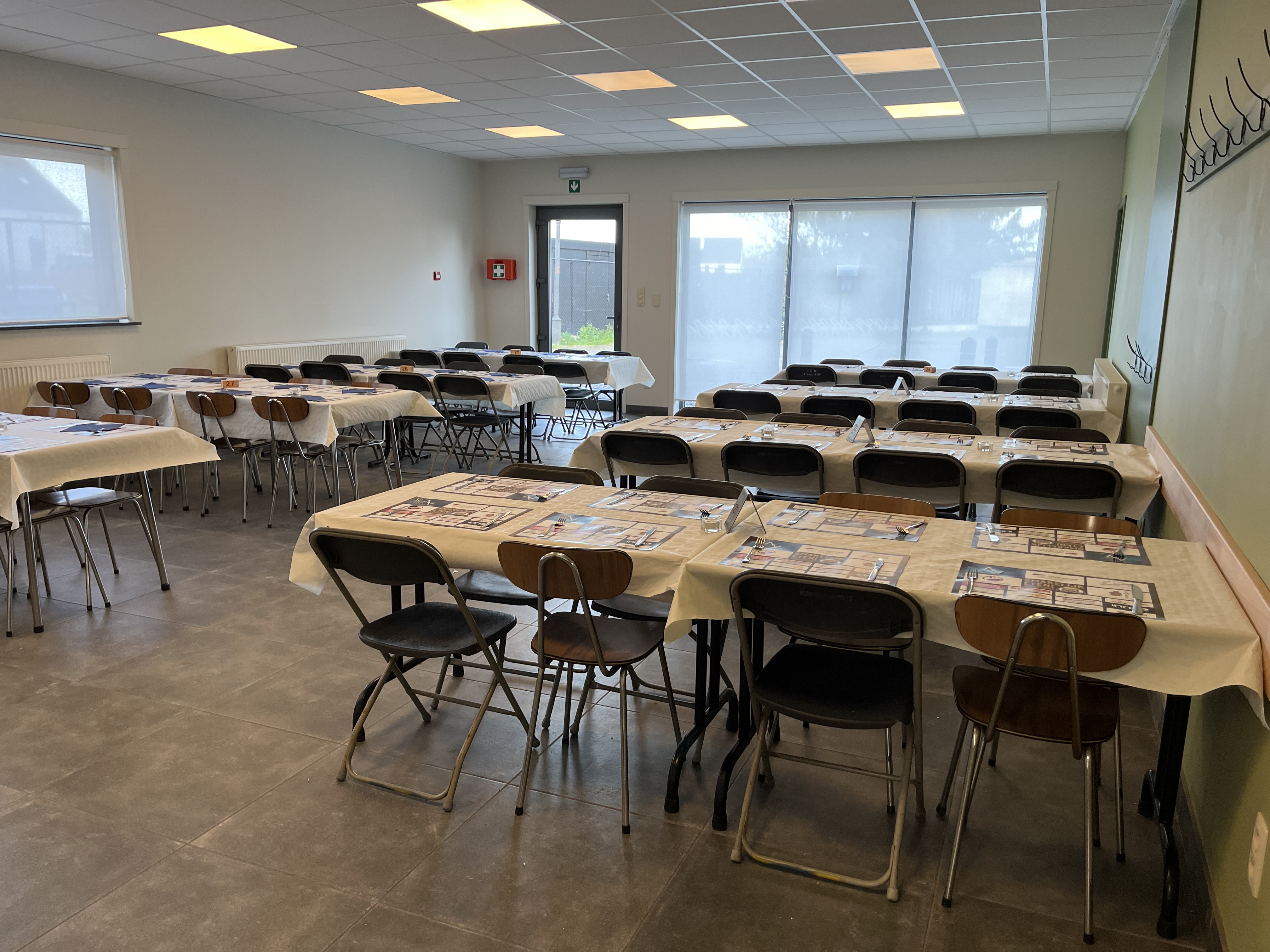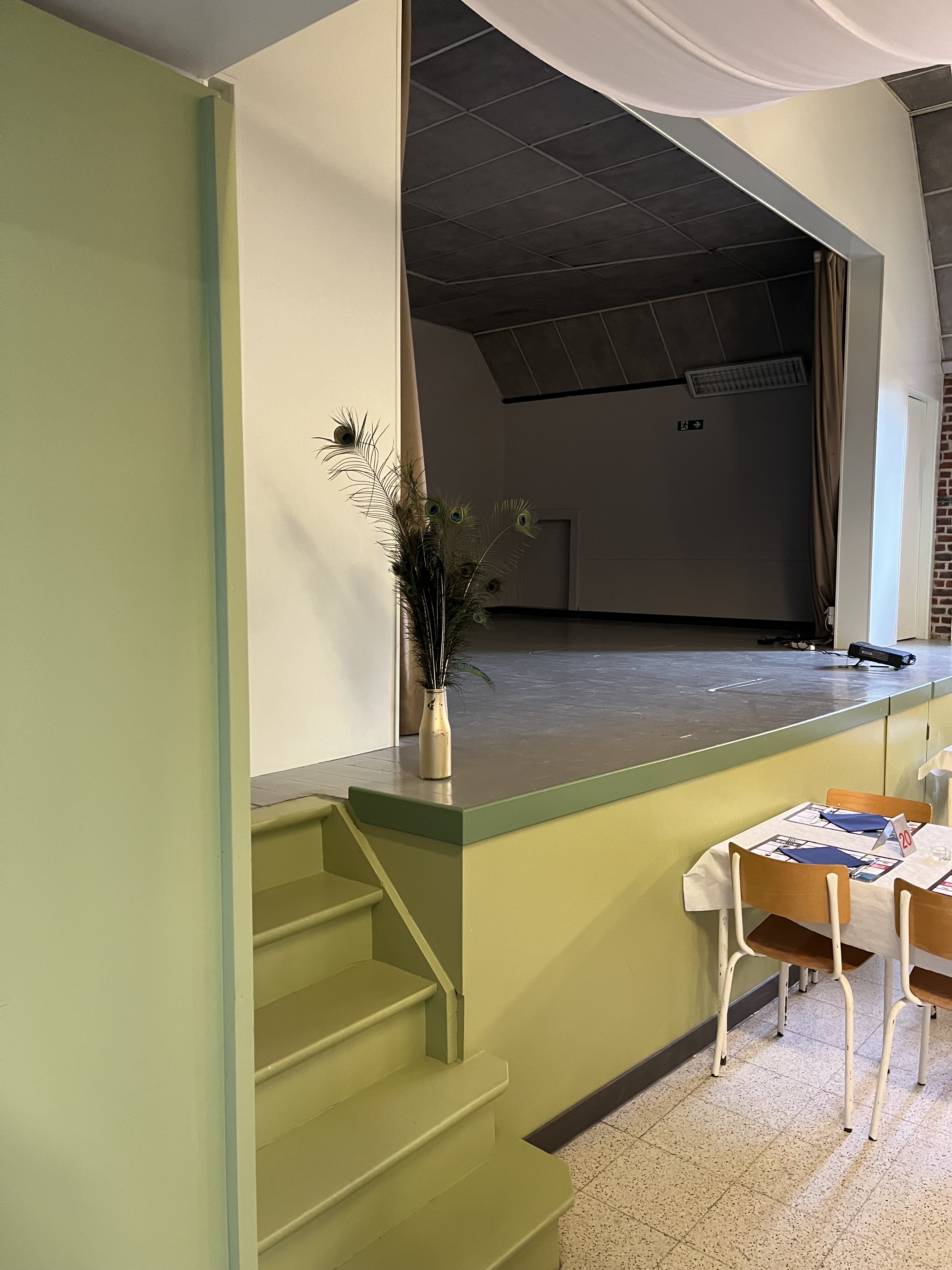 Foto’s Wil je de zaal ‘live’ bezichtigen? Dat kan elke 4de woensdag van de maand om 19u. Buitenkant Grote zaal Toog in de grote zaal Kleine zaal Keuken Varia
