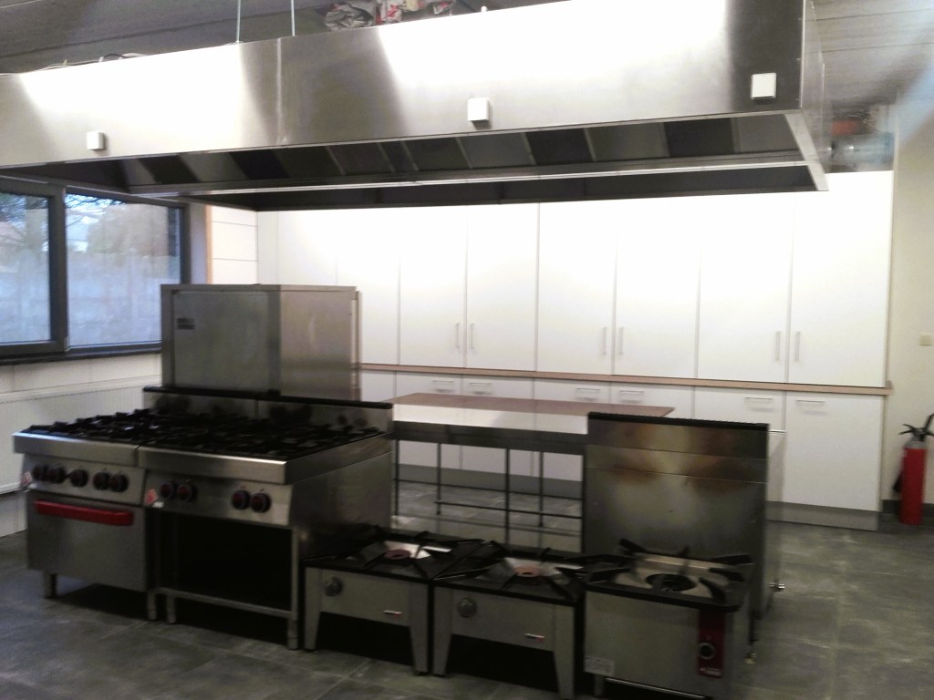 De keuken kan mee gehuurd worden en is uitgerust met grote frigo en diepvriezer, gasvuren en grote friteuse. Eveneens ter beschikking: een industriële vaatwasser en een combi oven. Alle keukenmateriaal zoals borden, soepkommetjes, bestekken, pannen en potten,…. is aanwezig.