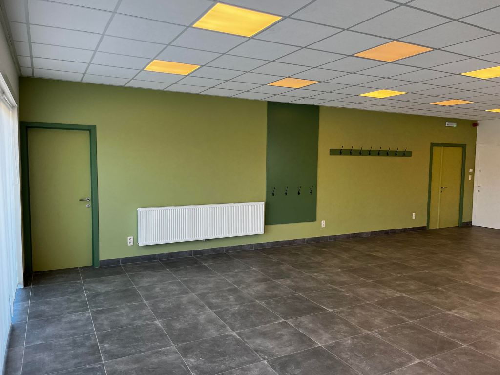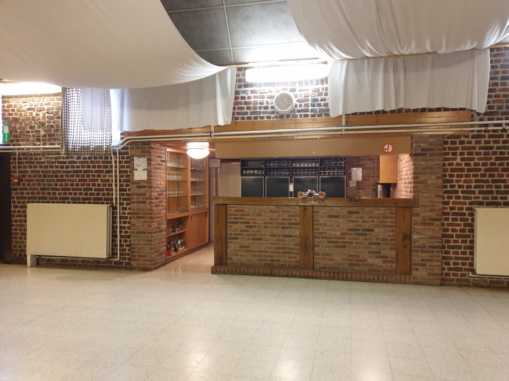 De grote zaal is een polyvalente zaal met een houten podium. In de zaal is een volledig uitgeruste toog ter beschikking.